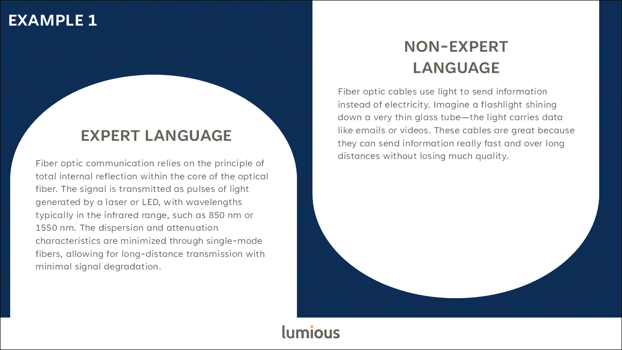 Demonstrate translating technical concepts and language into language appropriate for your audience.