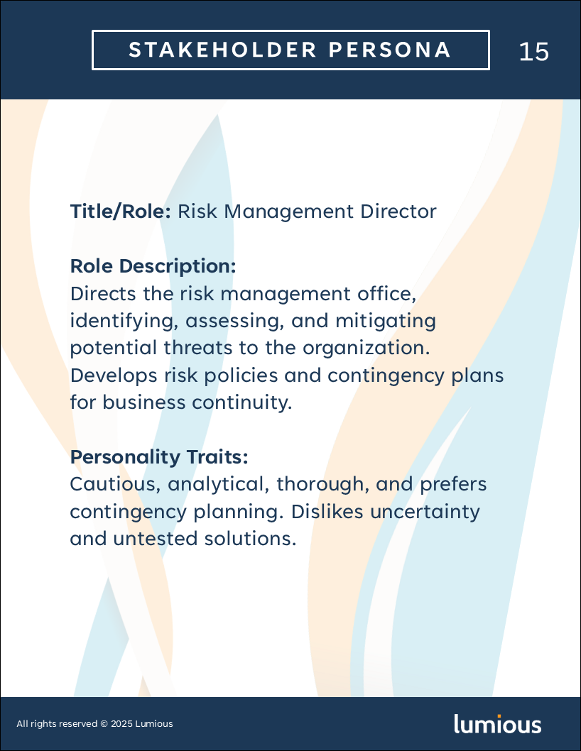 This time 30 Stakeholder Persona cards were supplied, again created by AI.