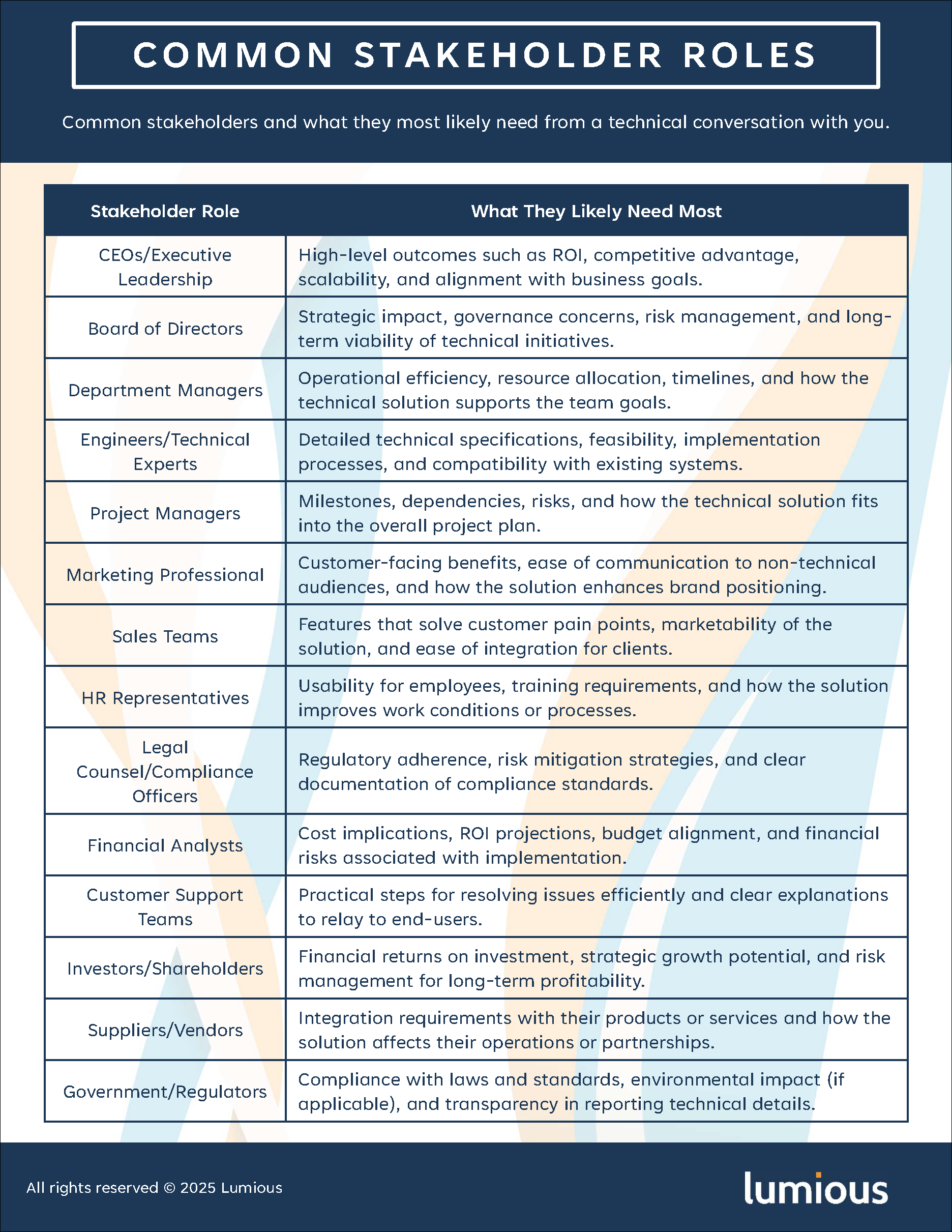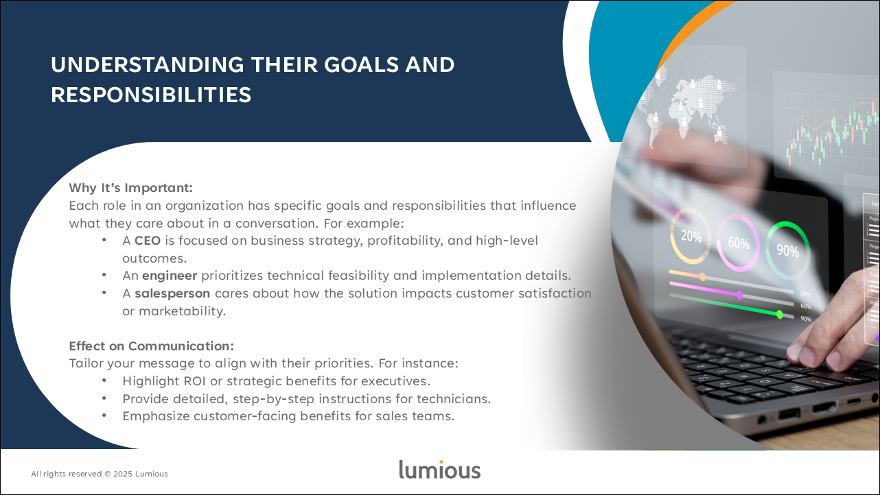 Practice using your understanding of your audience’s role to tailor your conversations on technical topics.